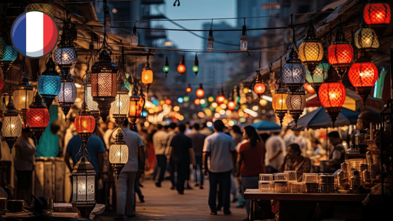 Très vite, l’ambiance change complètement. Les rues parisiennes calmes se transforment en un clin d’œil en un véritable marché animé à ciel ouvert, baignant dans une ambiance ramadanesque typiquement algérienne.